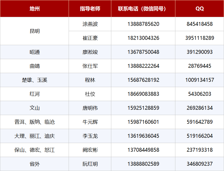 - 招生指导老师联系方式